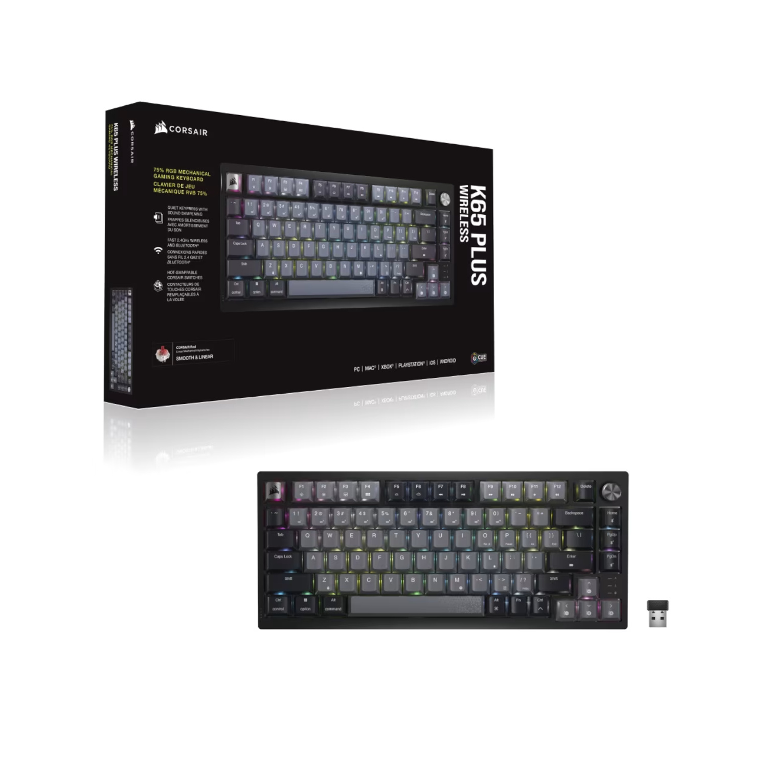 Corsair Teclado Mecánico Gamer RGB 75 % K65 PLUS WIRELESS Switch MLX RED (ENG)