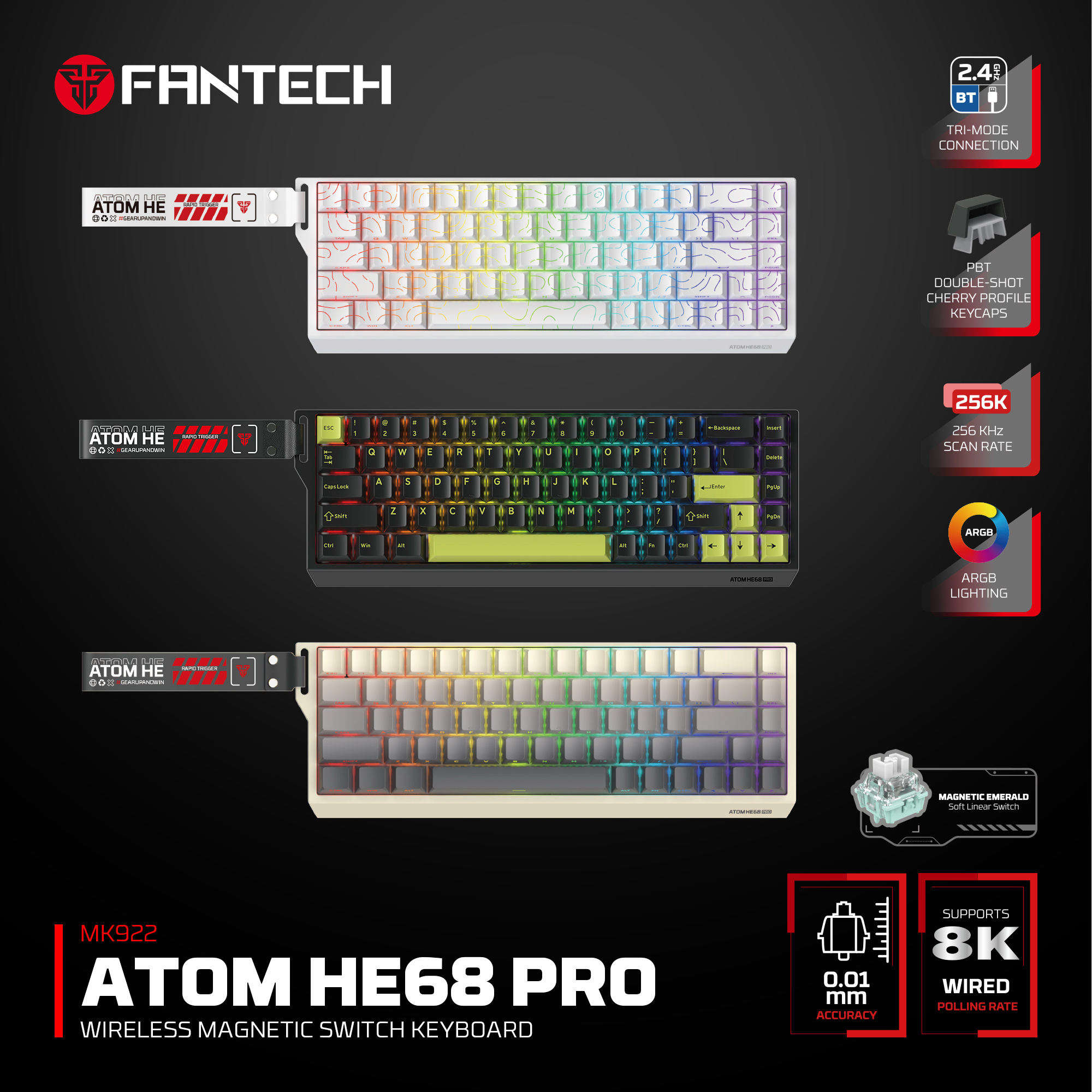 ⌨️ Teclado Magnético Inalámbrico Fantech ATOM HE68 PRO MK922 RETRO – 8K – Tri-Mode (US)