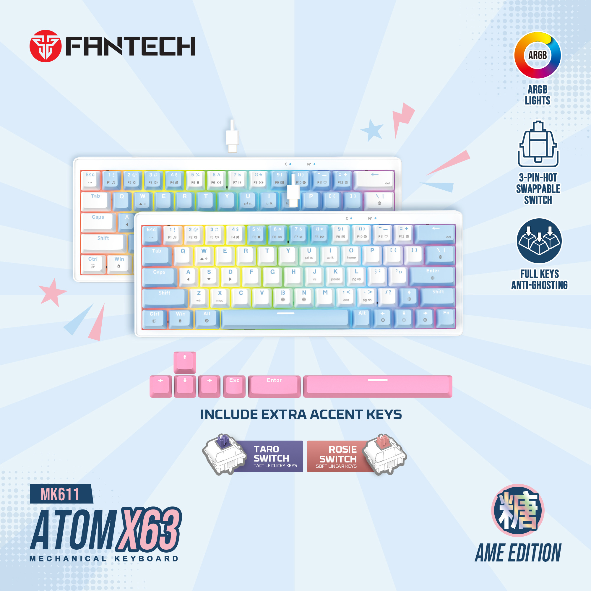 Fantech Teclado Mecánico ATOM X63 MK611 AME Edition WHITE Rosie Switch