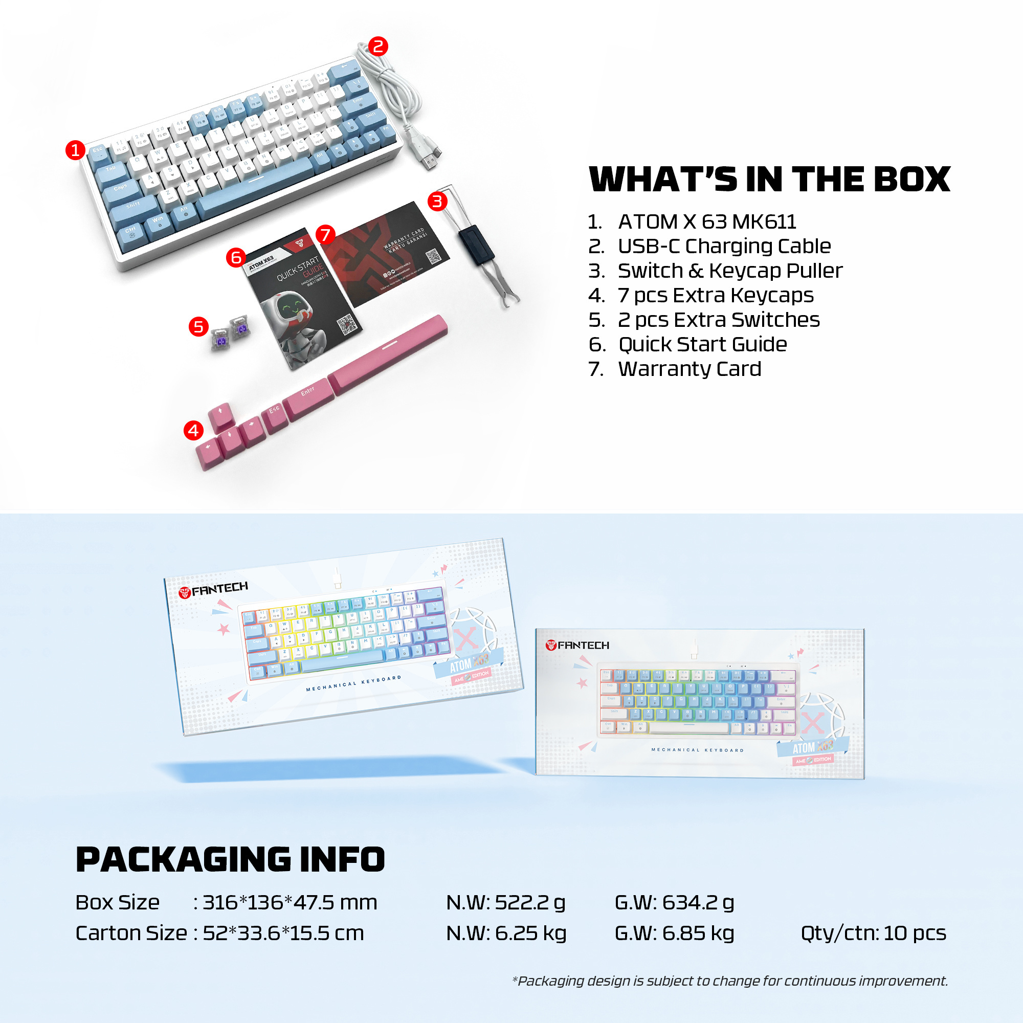 - 1 × Teclado Fantech ATOM X63 MK611 AME White