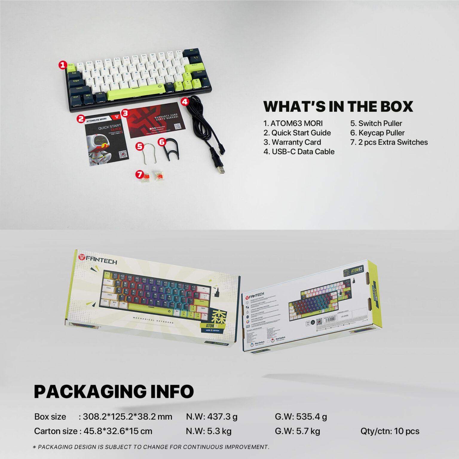 - 1 × Teclado Fantech ATOM63 MK874V2 MORI White