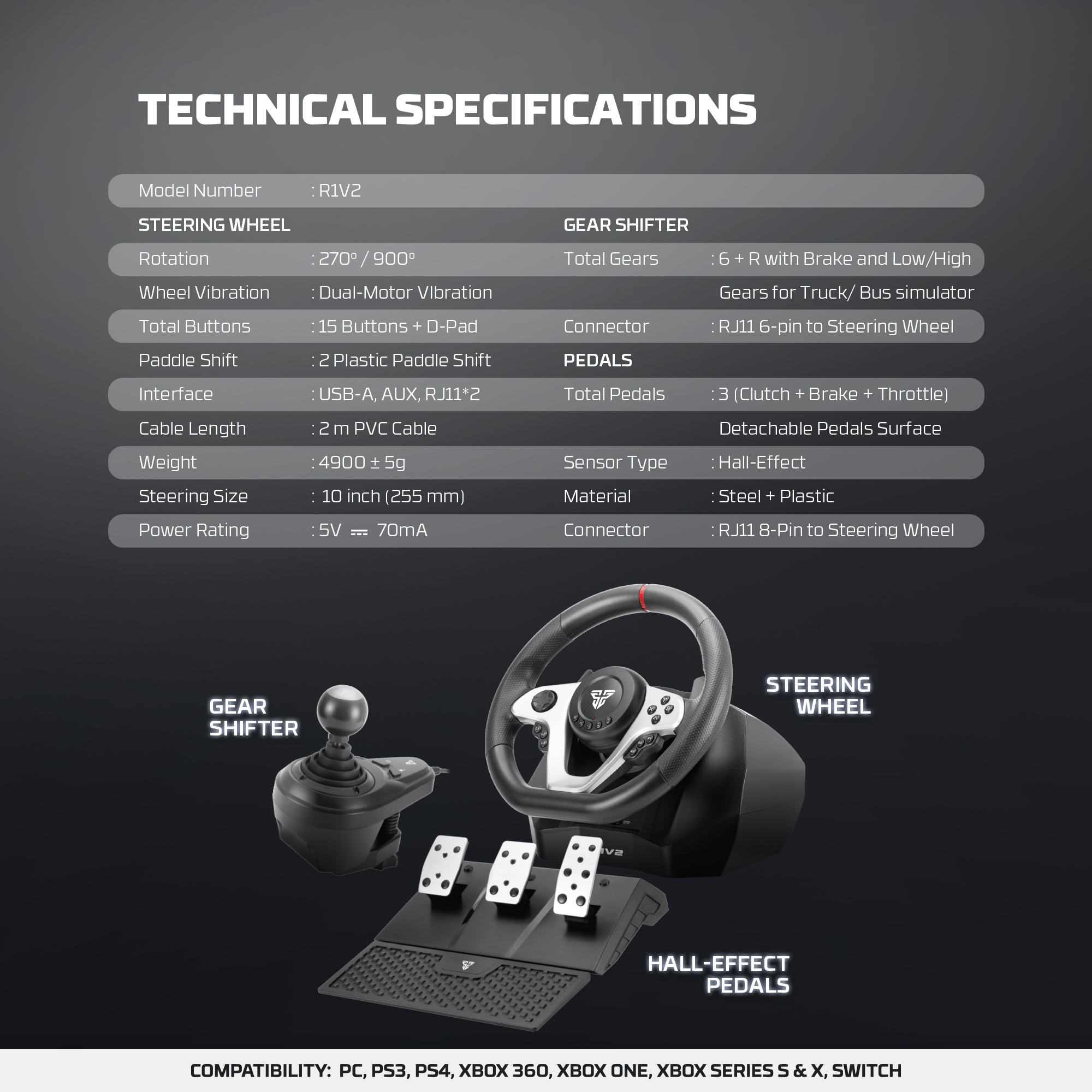 Fantech Volante de Carreras R1V2 Black Racing Steering Wheel