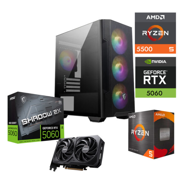 PC GAMER AMD RYZEN 5 5500 NVIDIA GEFORCE RTX 5060 16GB RAM DDR4 3200 500GB M2 SSD 550W W10PRO