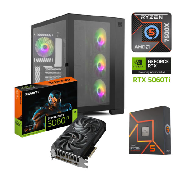 PC GAMER AMD RYZEN 5 7600X RTX 5060 TI 32GB RAM DDR5 5200 1TB SSD M2 NVME 750W W10 PRO