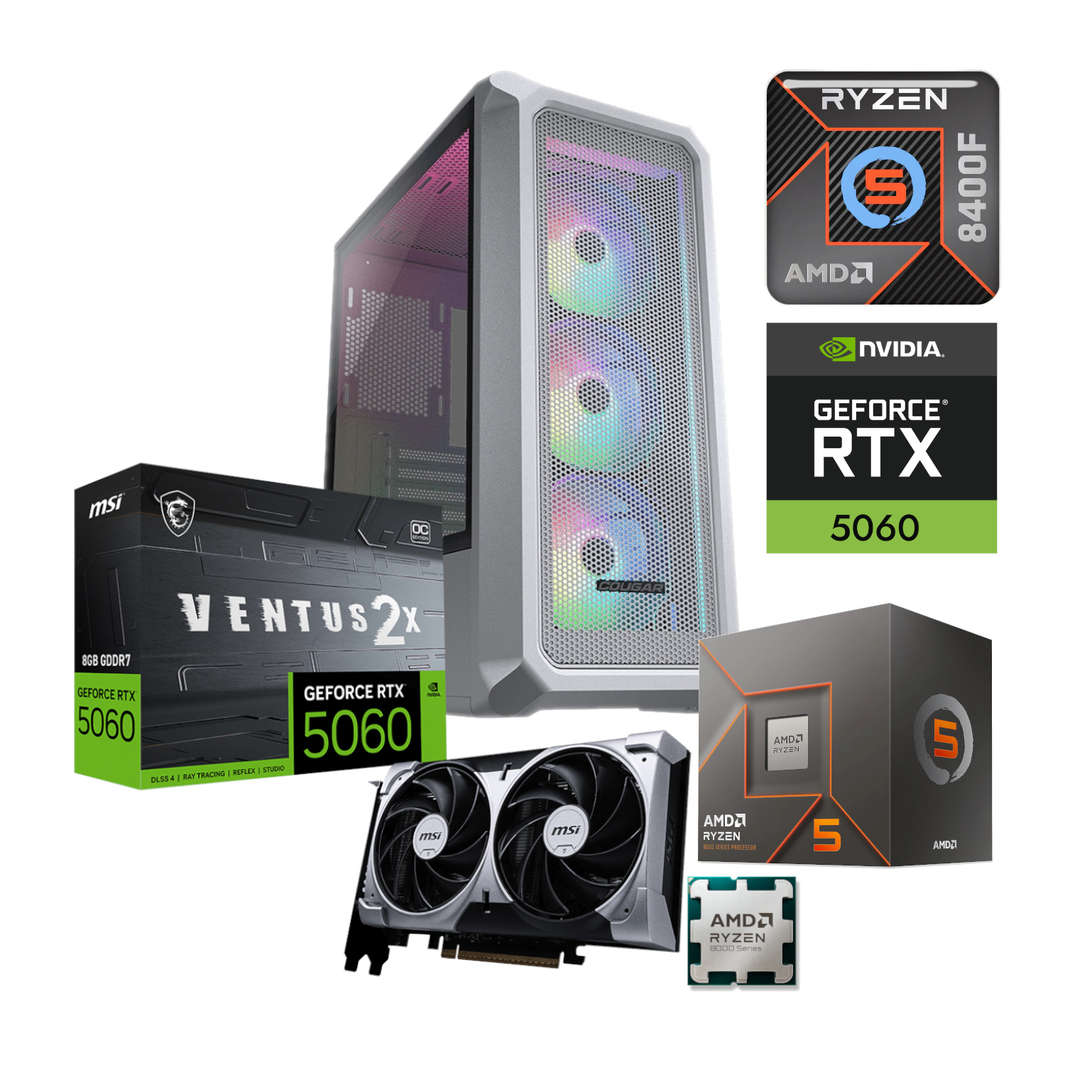 PC GAMER AMD RYZEN 5 8400F GPU RTX 5060 16GB RAM DDR5 500GB SSD M2 WIFI6 y BT AX3000 550W W11 PRO