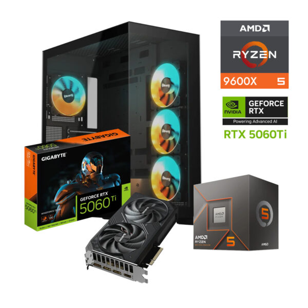 PC GAMER AMD RYZEN 5 9600X GPU RTX 5060 TI 32GB RAM DDR5 1TB SSD M2 B650 WIFI Y BT 650W W11 PRO