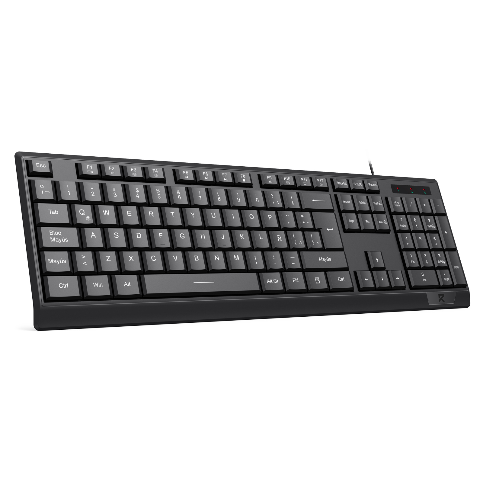 Distribución completa de 104 teclas (idioma Español Latinoamericano).